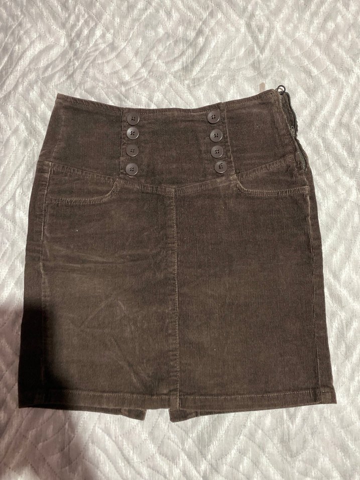 Kahverengi, fitilli dokuda, 27 beden kısa etek. Model duruşu çok şık, yüksek bel formunda ve düğme detaylarıyla modern bir görünüm sağlar. Kalın, kaliteli fitilli kumaşı sayesinde hem kış hem bahar kombinlerine çok uygundur. Temiz, kusursuz ve formu bozulmamış üründür.