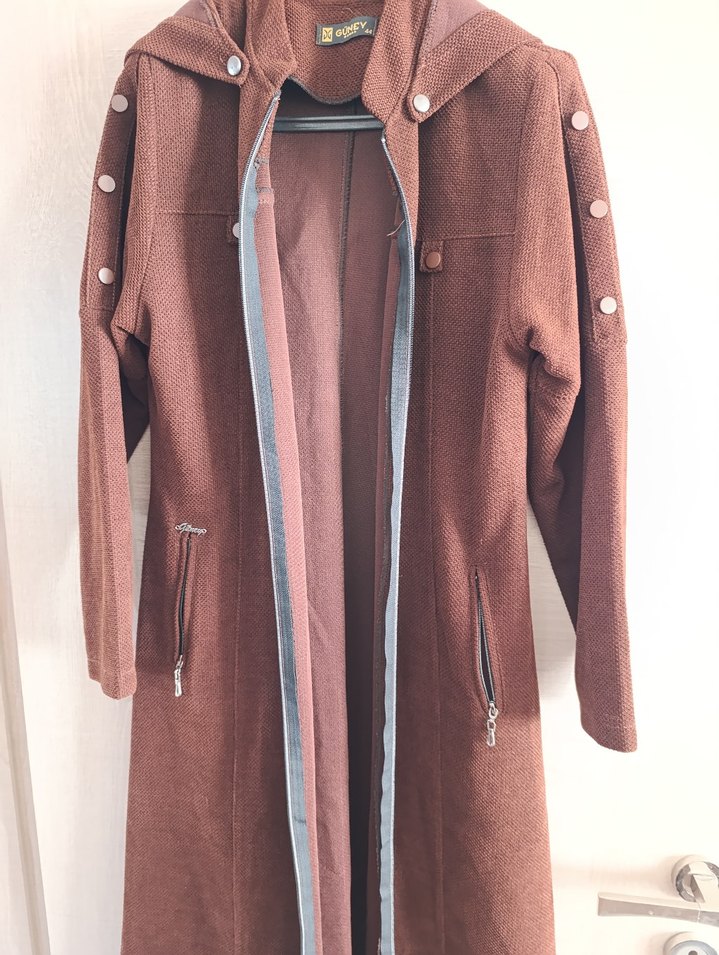 Düğmeli Kahverengi Uzun Kadın Kaban