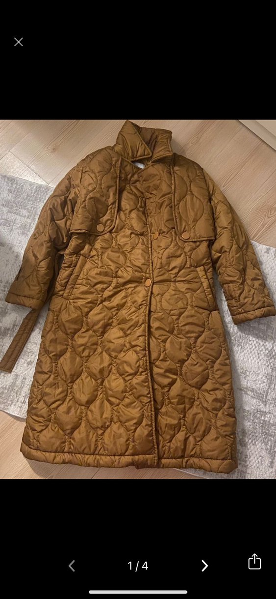 Yumuşak keten kumaştan yapılmış, düğmeli ve bol kesim kahverengi uzun kışlık mont. Notlu yaka ve uzun kollu, sokak modası tarzında. ❄️