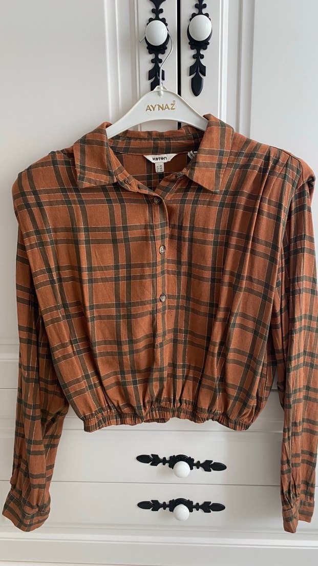 Düğmeli Kahverengi Uzun Kollu Gömlek