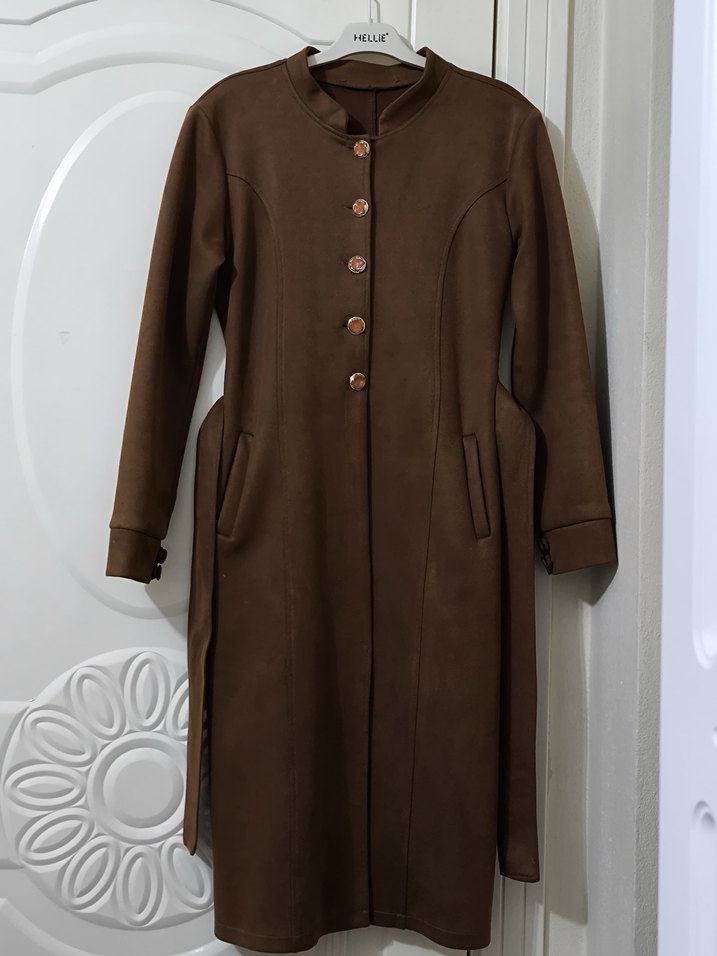 Düğmeli Kahverengi Vintage Kadın Kaban