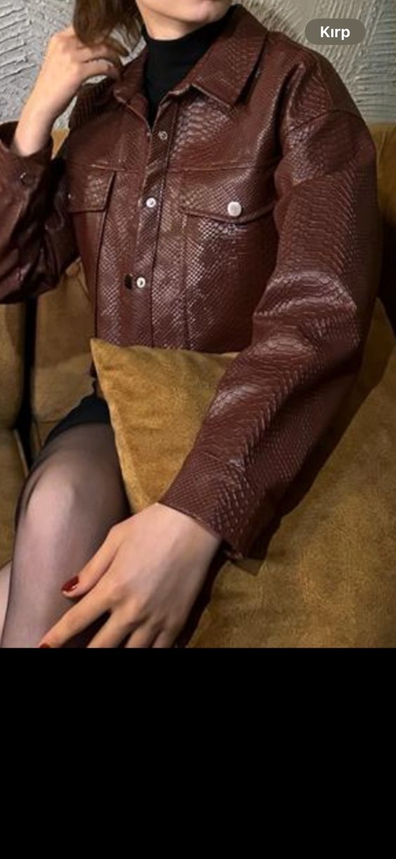 Düğmeli Kahverengi Yılan Derisi Desenli Deri Ceket