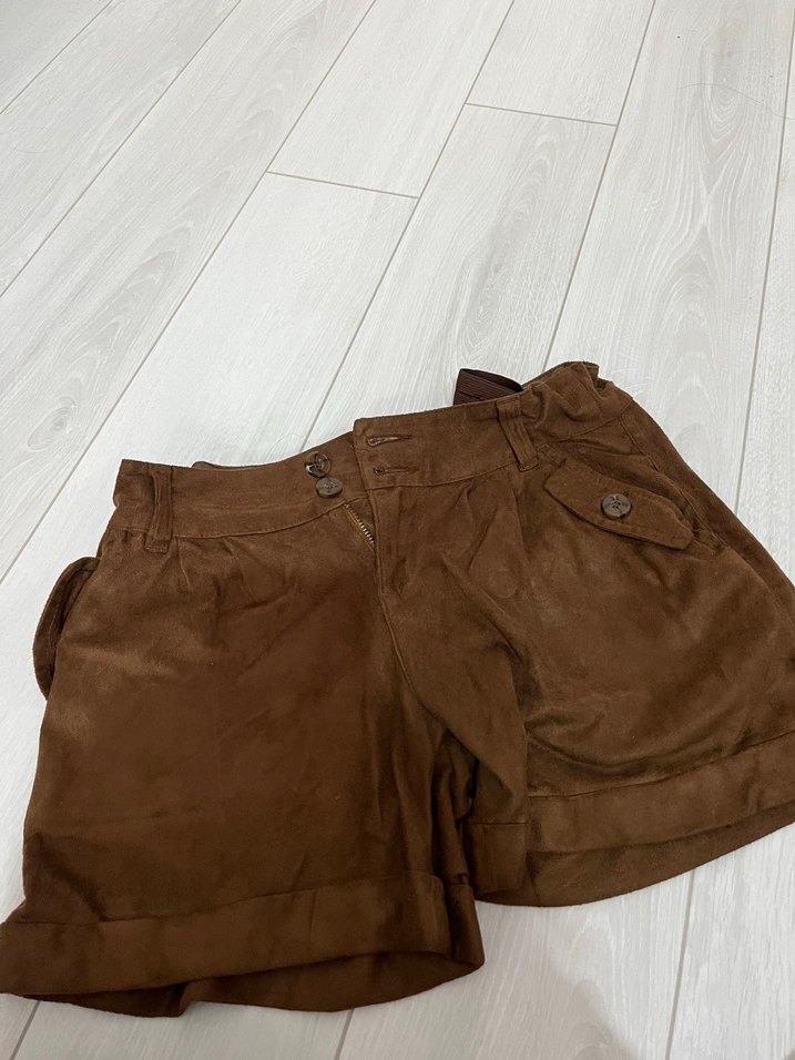 Düğmeli Kahverengi yumuşak kadifemsi Kadın Şort