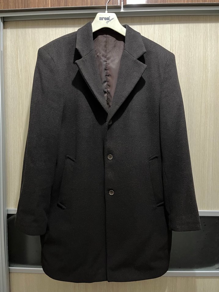 Kahverengi yün kaban.Arka tarafta sadece astar çekmesi vardır defosu yoktur.Tertemiz ürün