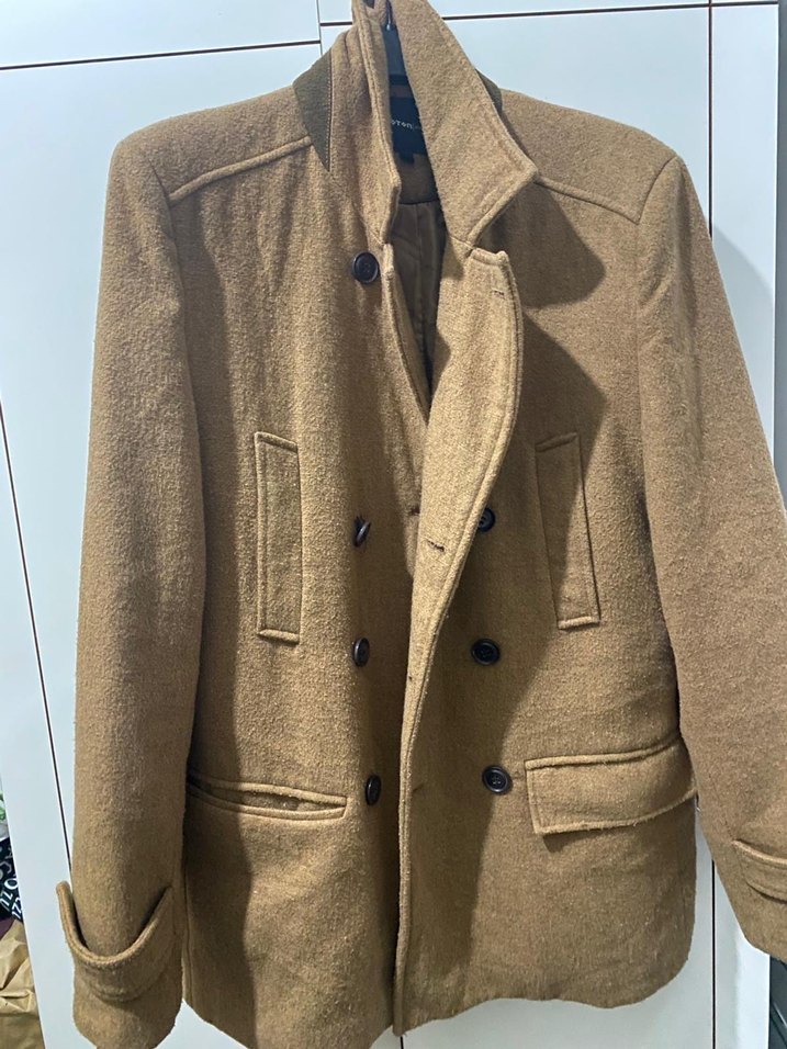 Düğmeli Kahverengi Yün Erkek Klasik Ceket