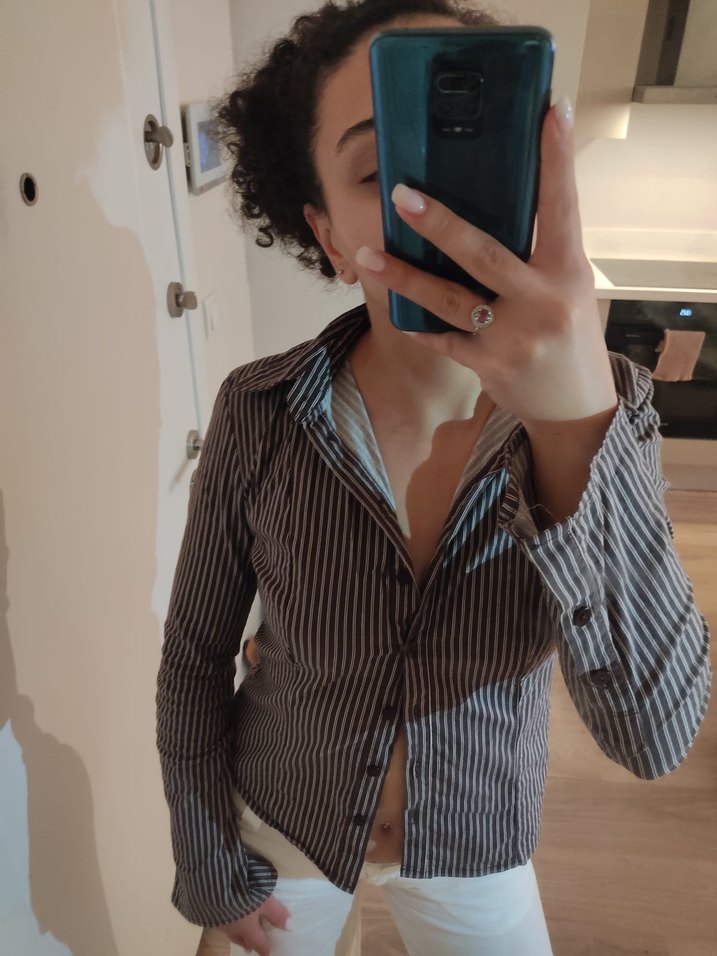 Düğmeli, uzun kollu, yakalı bu fitted gömlek, kahverengi zebra desenli denim kumaştan olup ofis kullanımı için uygundur. profilim de alt mevcut. Toplu alımlarda indirim yaparım