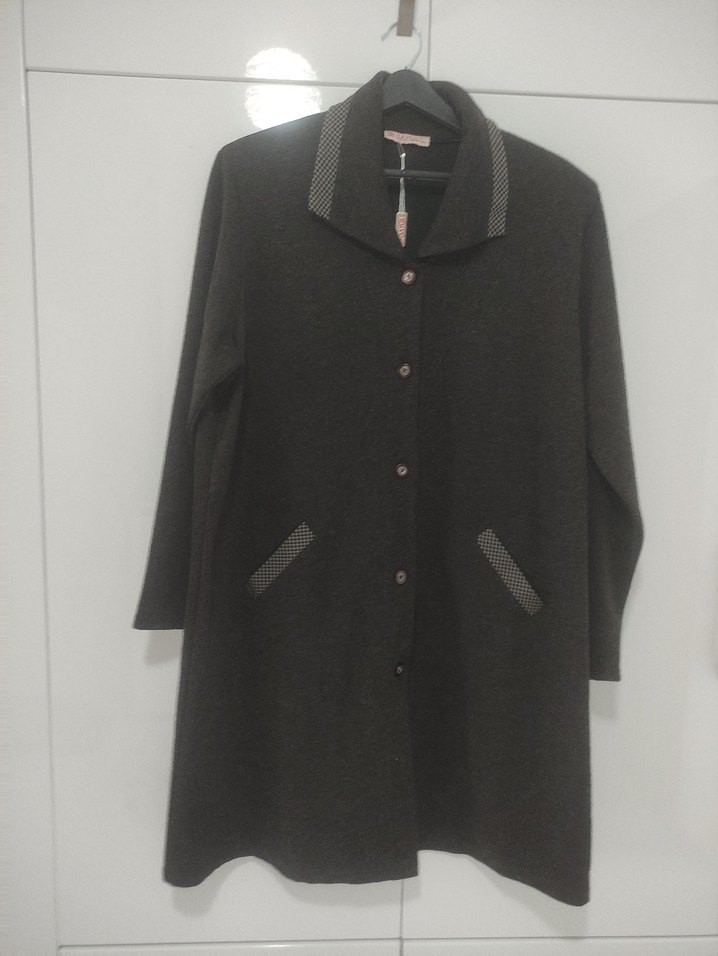 Kahverengi yarım ceket , düğmeli ve yakalıdır. Uzun kollu, rahat kesim ve yumuşak, sıcak kumaştan yapılmıştır. Günlük kullanıma uygundur. Hiç giyilmesi XL beden , tatlı bir kahve koyudur fotodan parlama çekimden kaynaklı,sorunsuz boy 91cm,iki koltuk arası 62cm, etek ucu 70cm,kol 57cm,vatkalıdır.#kadinceket#pardesü#hırka#koton#armine#hm