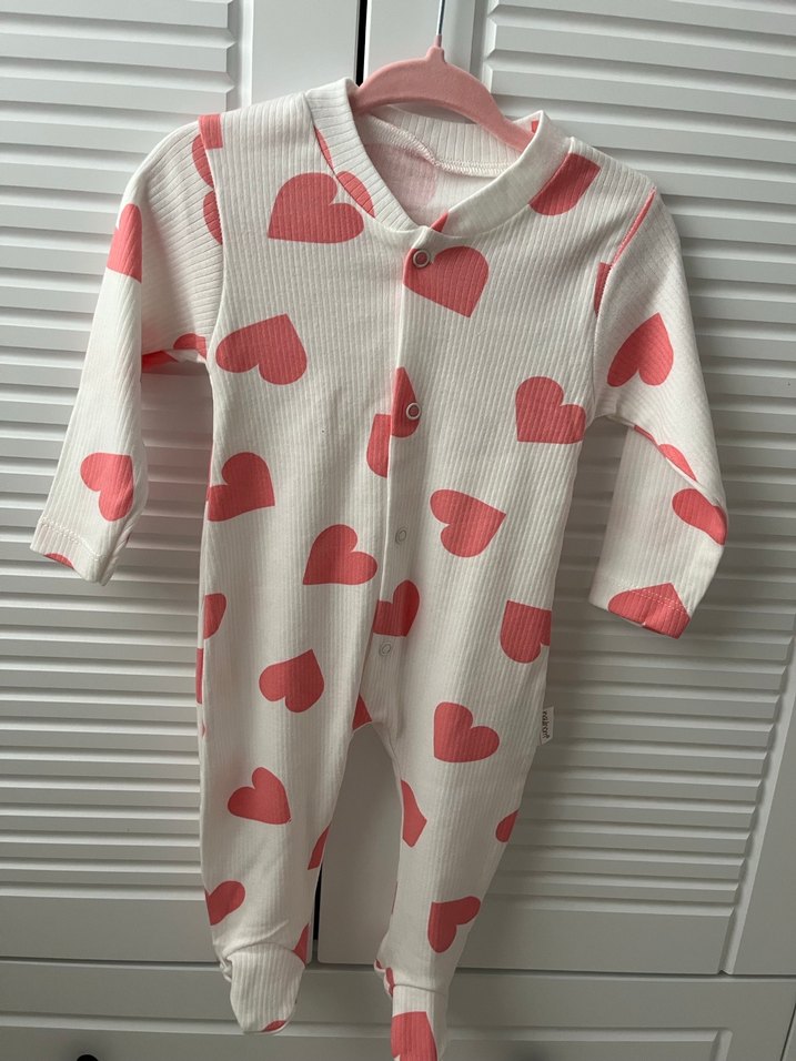 Düğmeli Kalp Desenli Bebek Tulumu