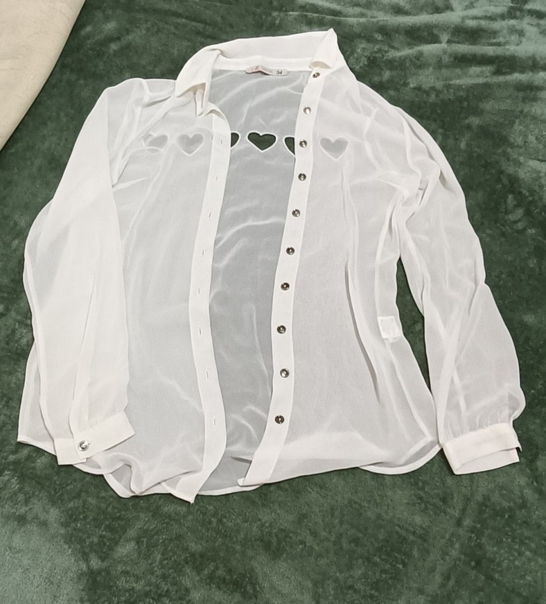 Düğmeli, Hafif baskılı ve yumuşak sentetik kumaştan, günlük kullanıma uygun, beden 34.