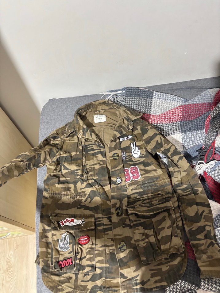Düğmeli Kamuflaj Desenli Kadın Ceket