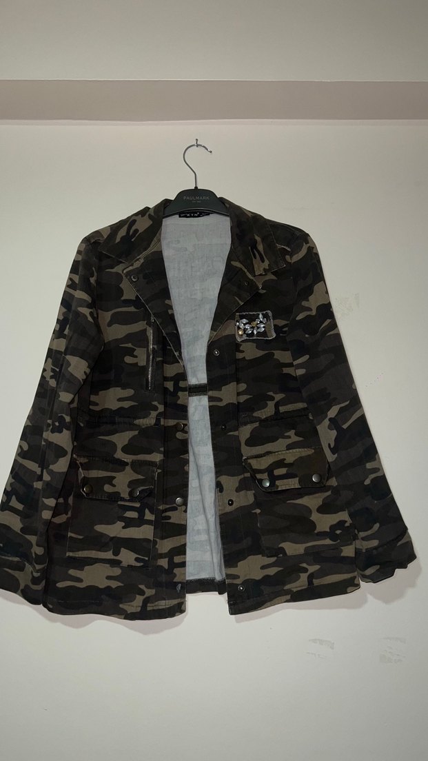 Düğmeli Kamuflaj Kadın Ceket