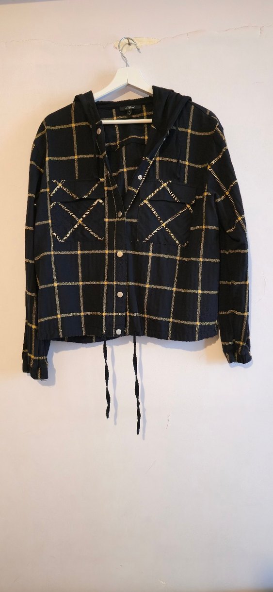 Düğmeli, uzun kollu, kareli desenlere sahip, bol kesim kadın gömlek. Günlük kullanıma uygun, tekstil kumaştan yapılmıştır. Rengi siyah/sarıdır.
