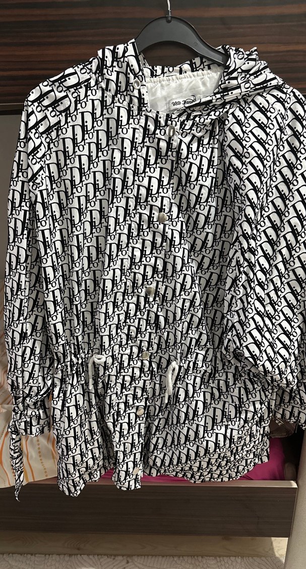 Düğmeli Kapüşonlu Desenli Gri Kadın Ceketi dior