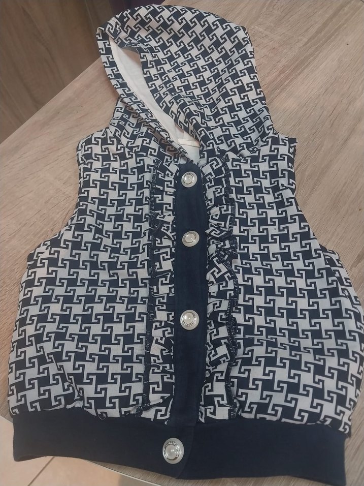 Düğmeli, yakalı, nakışlı desenli gri erkek çocuk yeleği, sentetik kumaştan, sokak stiline uygun, fitted kesim.