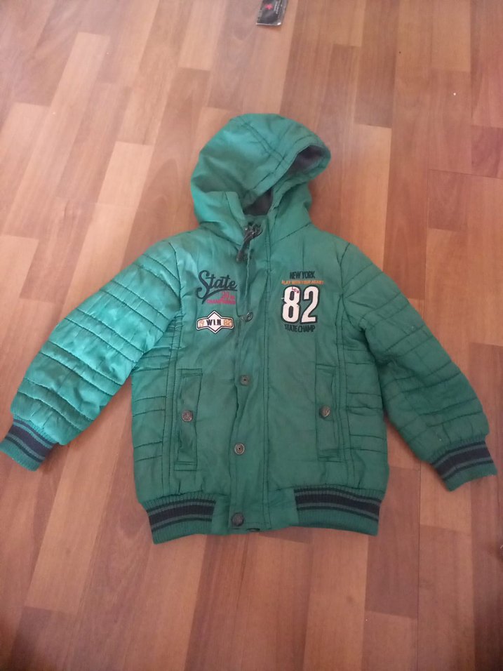 Düğmeli kapüşonlu, baskılı yeşil renkli erkek çocuk montu. Sıcak ve yumuşak kumaştan üretilmiştir, fit kesim ve sokak tarzı için uygundur.