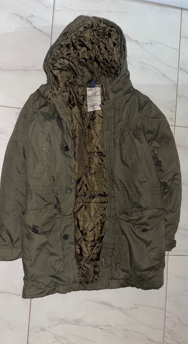 Düğmeli, kapüşonlu, notched lapel yakalı, bol kesim, uzun kollu erkek kaban. Sentetik kumaş ve midi boy, rahat ve dış mekan kullanımı için uygun. Boy 90cm gögüs 65cm bel 60cm kol uzunlugu 70cm kol genisligi 30cm