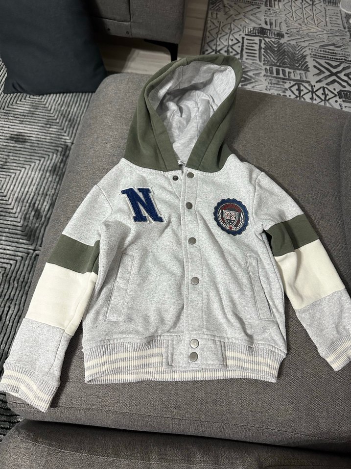 Düğmeli Kapüşonlu Gri Erkek Çocuk Ceketi 4-5 yaş