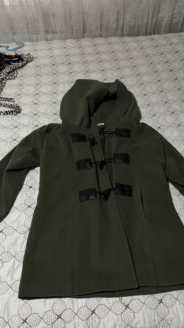 Düğmeli Kapüşonlu hakü yeşil Kadın Kaban