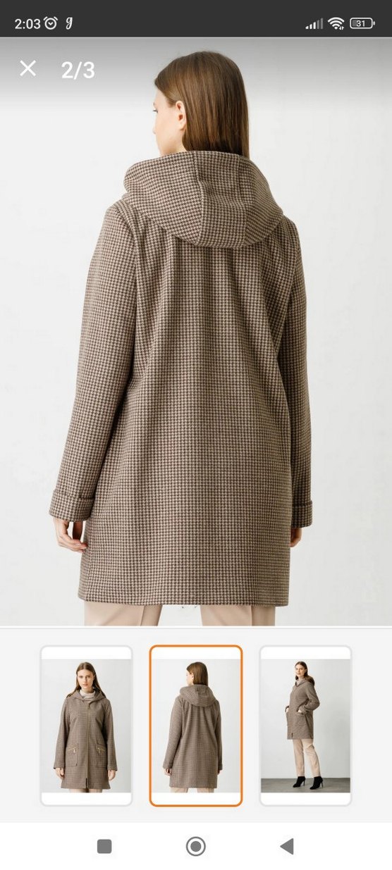 Yumuşak yün kumaştan, kapüşonlu ve düğmeli, bol kesim bej kareli hamile kabanı. Uzun kollu ve midi boy, günlük kullanım için uygun.