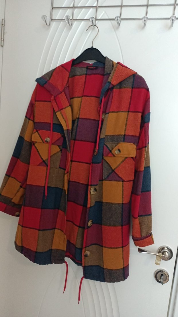 Kadınlar için düğmeli, kapüşonlu ve yakalı oduncu gömleği. Renkli kareli desenli, uzun kollu ve yumuşak, sıcak kumaştan üretilmiştir. Günlük kullanıma uygundur.