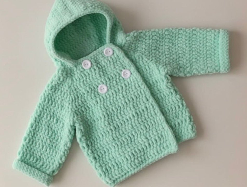 Pastel yeşil renkli kız örgü hırka, uzun kollu, düğmeli ve kapüşonludur. Rahat kesimi ve yumuşak dokusuyla günlük kullanıma uygundur.
