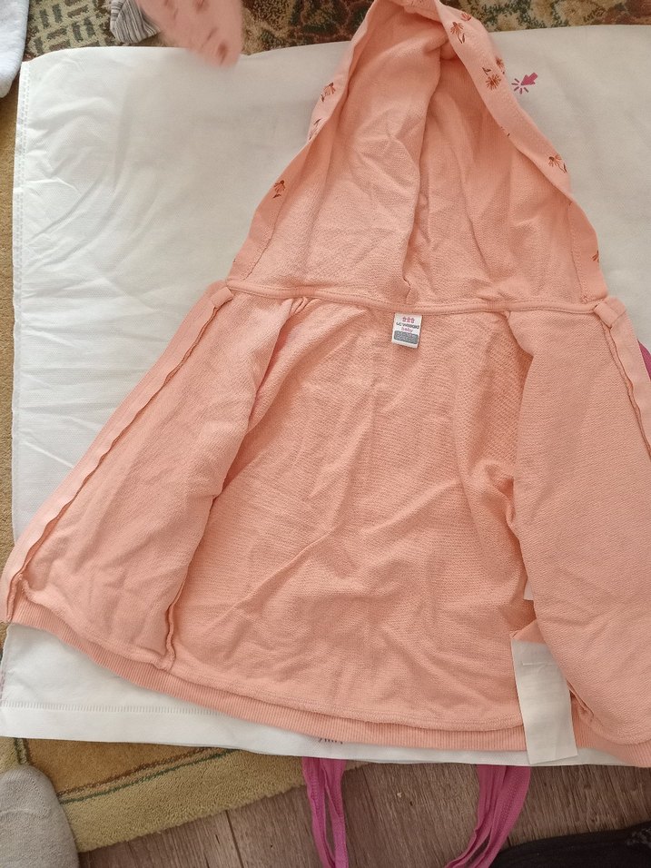 Düğmeli, kapüşonlu ve bol kesim kız çocuk ceketi, yumuşak ve sıcak kumaştan yapılmıştır. Pastel pembe renkte, desensiz sade tasarıma sahiptir.