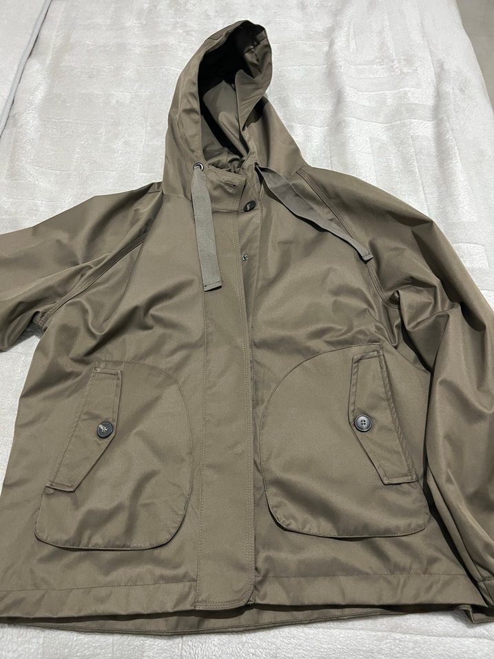 Düğmeli ön cep ve kapüşona sahip, bol kesim ve midi boy yağmurluk. Günlük kullanım için uygundur. ☔