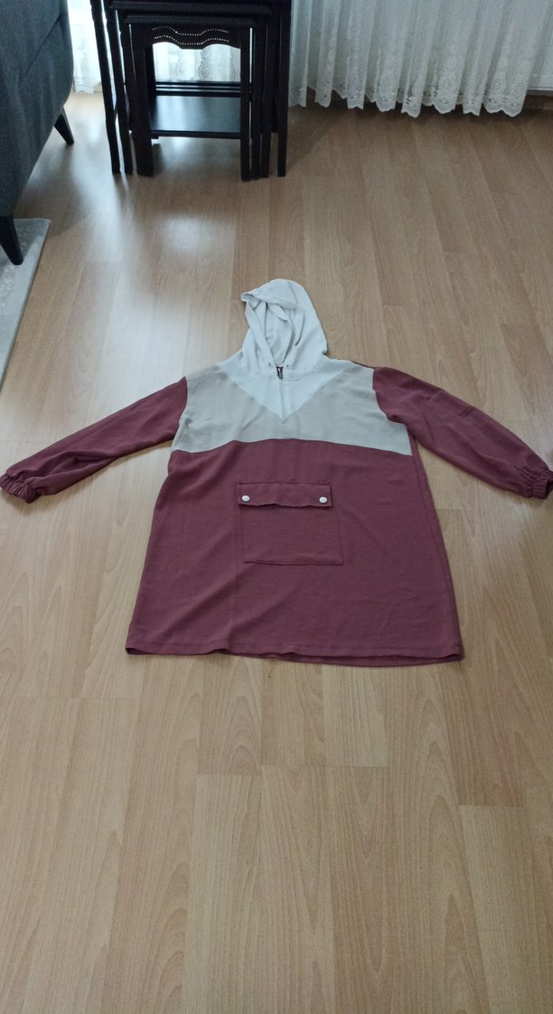 Kadınlar için uzun kollu, kapüşonlu ve bol kesim tunik renkleri düğmeli ön ceple birleşiyor, yumuşak ve sıcak kumaştan. Günlük rahat kullanım için uygun.