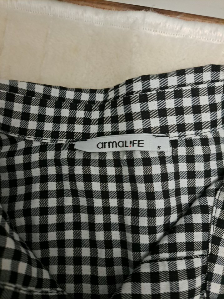 Gri beyaz kareli, düğmeli, normal kesim midi boy kadın gömlek Günlük rahat kullanıma uygun. Marka: armaL!FE.
