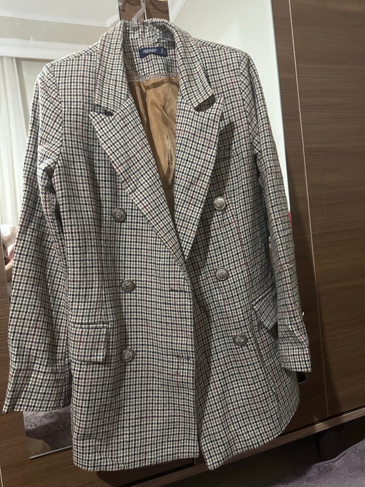 Düğmeli Kareli Kaşe Blazer Ceket