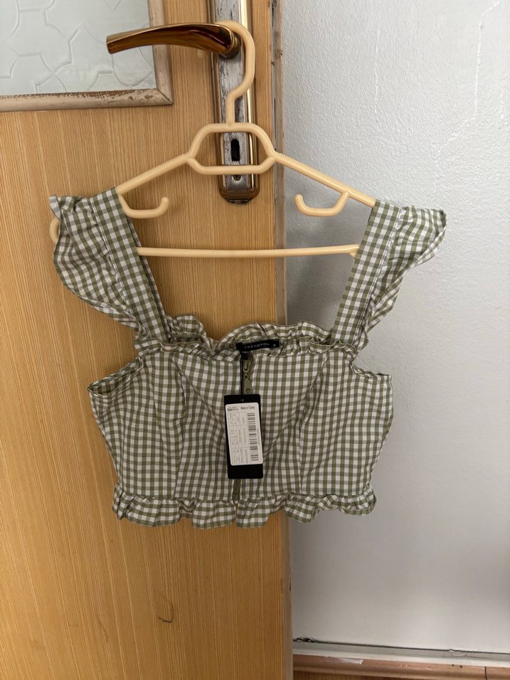 Düğmeli Kareli Mini Crop Top