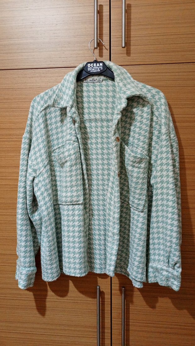kaşe salaş kalın gömlek dış giyim olarak kullanılabilir çok hafif tiftiklenme var yakından çektim mümkün olduğu kadar salaş yapida olduğu için m bedene de uygun olur