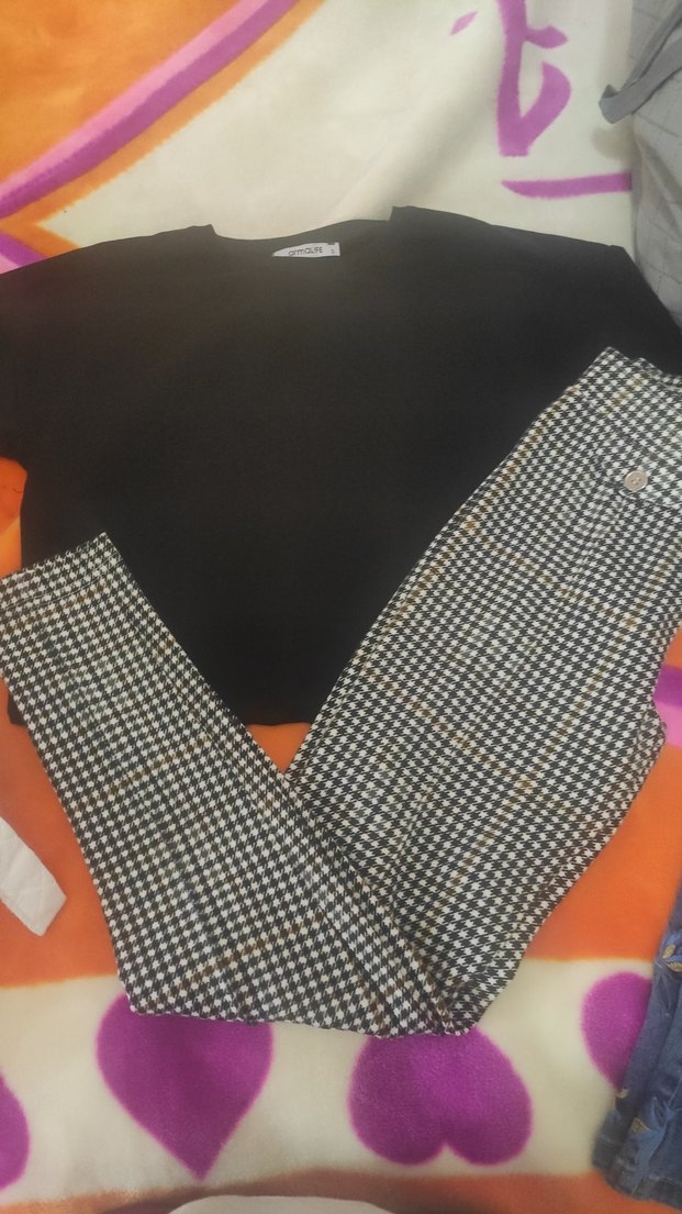 Düğmeli kazayağı desen tayt pantolon ve sweatshirt