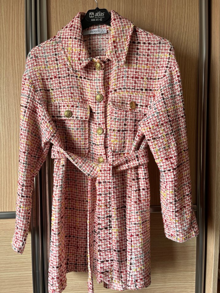 Düğmeli, kemerli kadın mini gömlek, uzun kollu ve kırmalı yaka detaylıdır. Sentetik kumaştan yapılmış, pastel çok renkli batik desenlidir. Rahat kesimlidir. Boyu 70cm eni 45cmdir