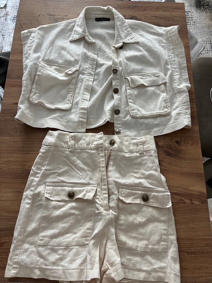 Beyaz keten kumaştan yapılmış, düğmeli detaylı, kısa kollu ve bol kesim kadın kısa tulum. Notlu yaka ve günlük kullanıma uygun bohem tarzda. DÜĞMELERİNİN rengi gitti sadece değiştirilebilir
