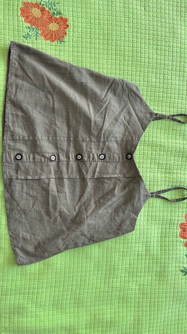 Düğmeli Keten Gri Bohem Askılı Bluz
