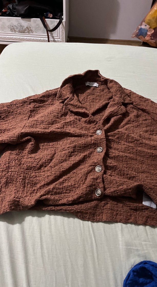 Kahverengi keten kadın gömlek, düğmeli, uzun kollu, rahat kesim ve yakası notched lapel tarzında, sade ve bohem stil sunar.