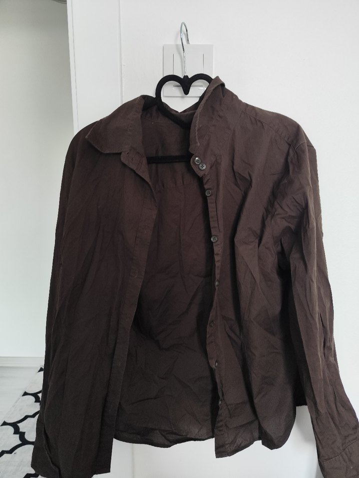 Bu kahverengi keten kadın gömlek, yakalı ve uzun kolludur. Düğmeli öne sahip, bol kesim ve midi boyda, minimalist tarz için uygundur. elden çıksın die uyguna yazdım