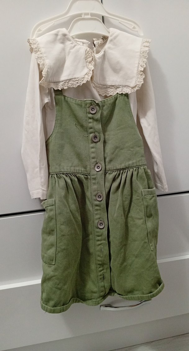 Pastel keten kumaştan, düğmeli, yakalı, kolsuz ve bol kesim kız çocuğu yeni az kullanılmış salopet takım süprizi cebinde salopet 100₺ badi 50₺