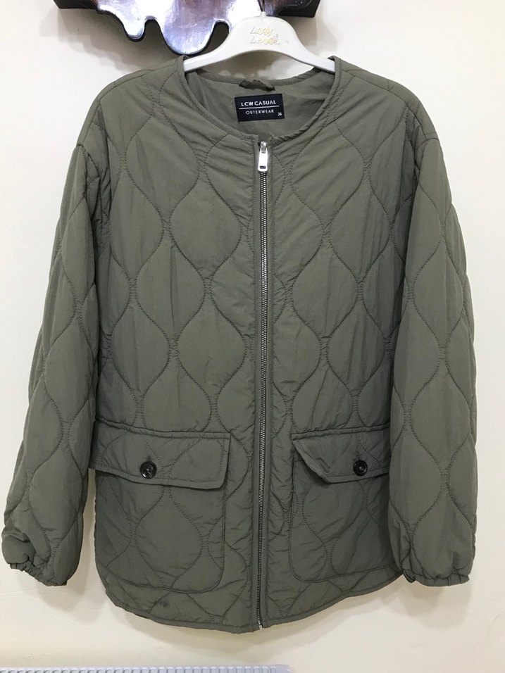 Düğmeli ve fermuarlı ön kapamalı, khaki renk kadın ceket. Yuvarlak yaka, uzun kollu, normal boy ve rahat kesim. Yumuşak ve sıcak kumaştan, günlük sokak stili için ideal.