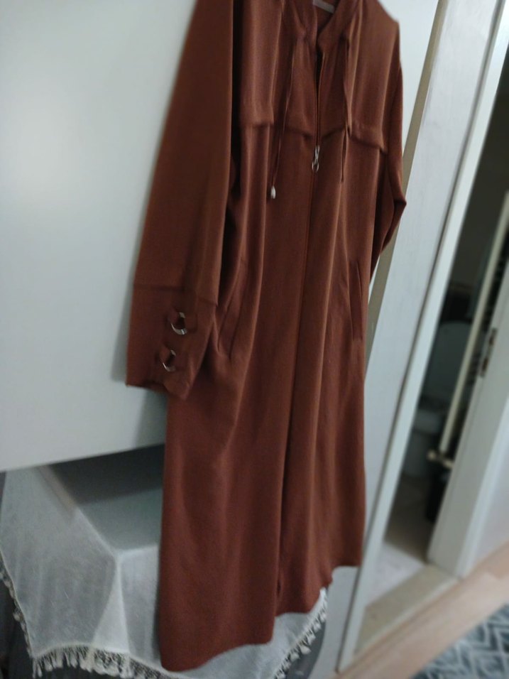 Düğmeli Kiremit rengiUzun Kadın yazlık pardesü