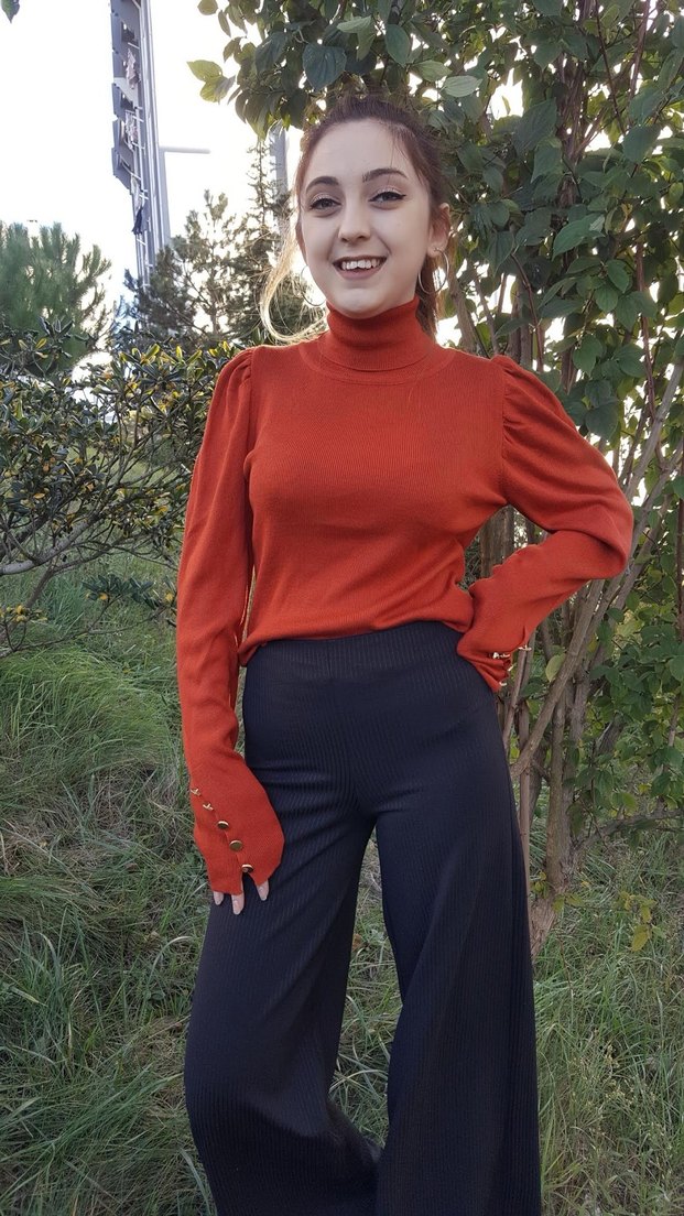 Düğmeli Kırmızı Balıkçı Yaka Triko