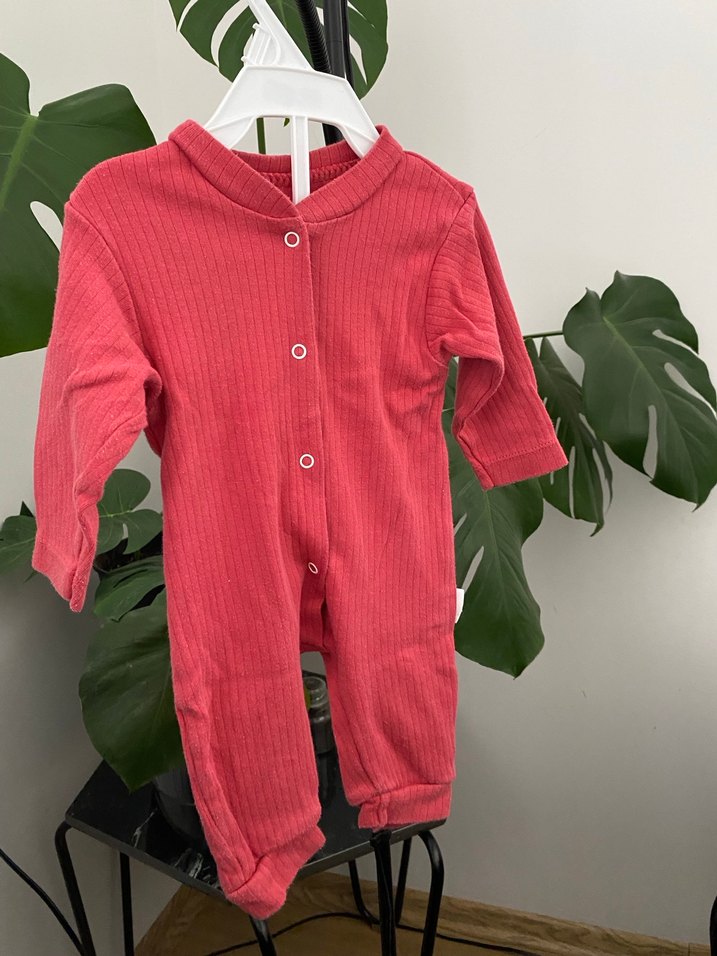 Düğmeli ve yumuşak dokulu kırmızı bebek kız tulumu, rahatlık ve kolay giydirme sağlar.