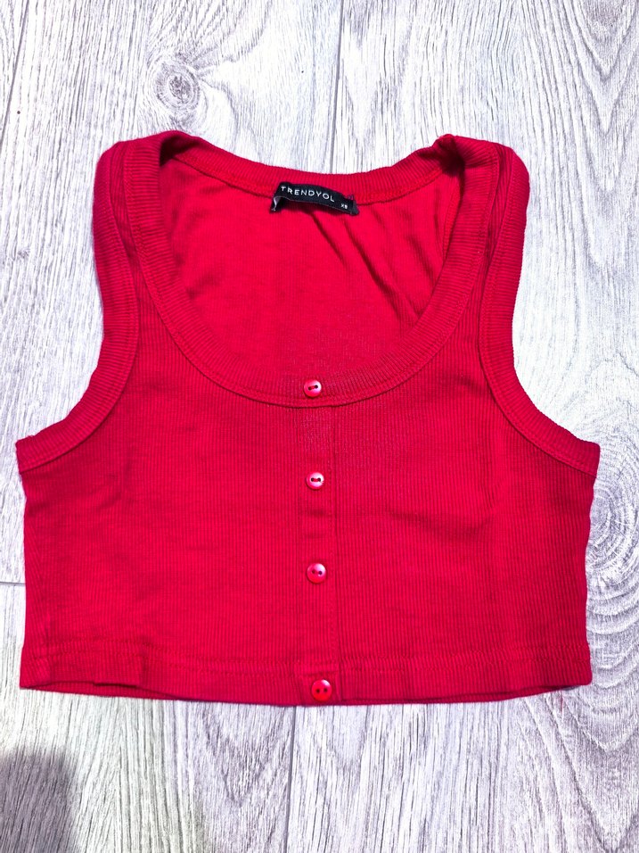 Düğmeli Kırmızı Crop Top