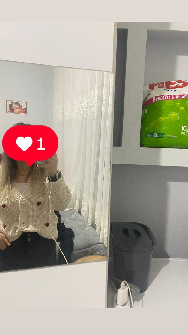 Düğmeli, uzun kollu, yuvarlak yaka, kırmızı renkli ve desenli kadın trikosudur. Rahat kesimiyle günlük kullanıma uygundur. Standart bedendir Söküğü defosu yoktur