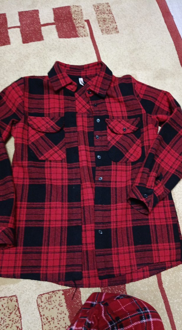 Düğmeli, uzun kollu kırmızı-siyah ekose desenli, bol kesim ve yakalı, yumuşak ve sıcak kumaştan yapılmış kız cocuk gömleği. Rahat kullanım için uygundur.