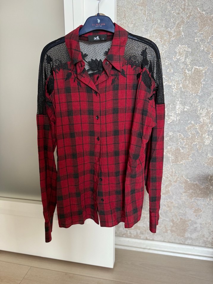 Bordo renkli ekose bir modeldir. Omuz kısmı siyah dantelli şık bir gömlektir. Rengi resimlere göre daha koyu bir bordodur ışıkta daha kırmızı gibi görünüyor.Kalıbı rahattır S/M bedenlere uygundur.Koltuk altı 53 cm omuzdan boyu 63 cmdir.