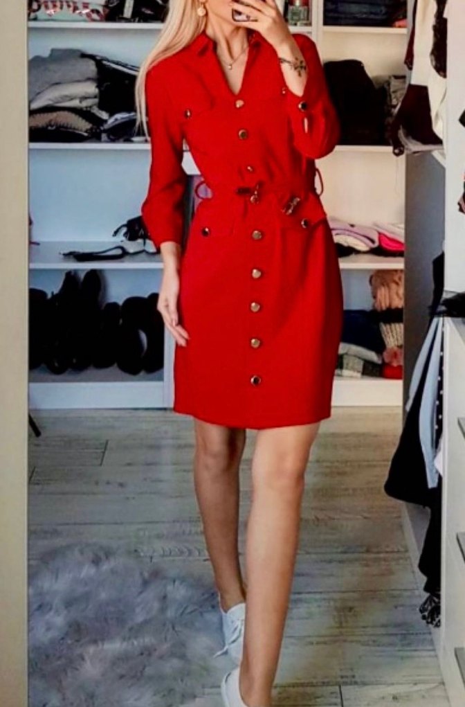 Düğmeli Kırmızı Elbise