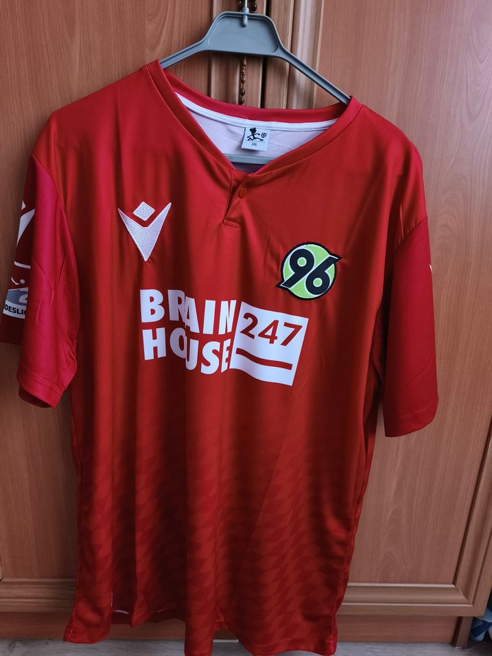 Kırmızı renkli, düğmeli, kısa kollu, yuvarlak yakalı, baskılı erkek jersey tişört. Rahat kesim ve sentetik kumaştan, sokak stili için uygundur.