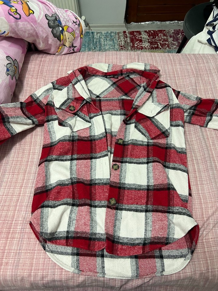 Pamuk kumaştan, uzun kollu, düğmeli ve yakalı bu gömlek kırmızı ve gri ekose desene sahiptir. Salaş kesimiyle rahat ve günlük sokak stili için uygundur. 1 defa giyildi